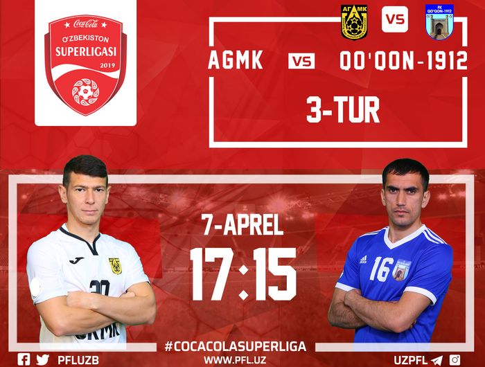 3-tur doirasida AGMK o`z maydonida “Qo`qon-1912”ga qarshi bahs olib boradi. O`yinda olmaliqliklar oq-oq-oq rangli liboslarda harakat qilishadi. Qo`qonliklar esa to`liq ko`k rangdagi sport formalarida maydonga tushishadi.
