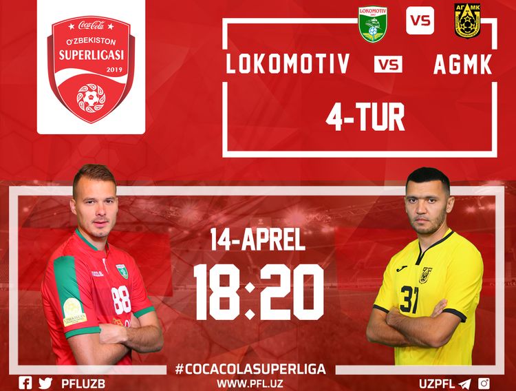 4-tur doirasidagi so`nggi bahsda “Lokomotiv” o`z maydonida AGMKni qabul qiladi. Mazkur uchrashuvda “temiryo`lchilar” qizil-qizil-qizil libosda maydonga chiqishadi. AGMK futbolchilari esa sariq futbolka, qora shorti hamda qora rangdagi getrilarda harakat qilishadi.