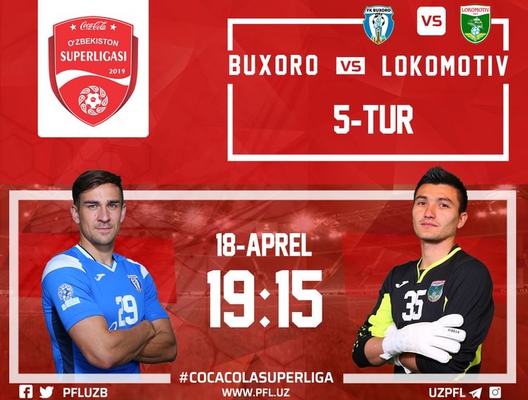 5-tur doirasida 18 aprel, payshanba kuni “Buxoro” o`z maydonida “Lokomotiv”ga qarshi bahs yuritadi. Ushbu uchrashuvda buxoroliklar to`liq ko`k rangdagi liboslarda maydonga chiqishadi. “Temiryo`lchilar” esa oq futbolka, yashil shorti hamda oq getrilarda harakat qilishadi.