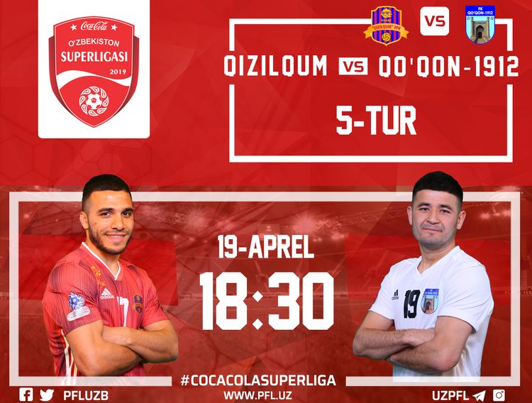 5-tur doirasida “Qizilqum” jamoasi o`z maydonida “Qo`qon-1912”ga qarshi bahs olib boradi. Mazkur uchrashuvda navoiyliklar to`liq qizil rangli liboslarda maydonga tushishadi. Qo`qonliklar esa to`liq oq rangdagi sport formalarida harakat qilishadi.