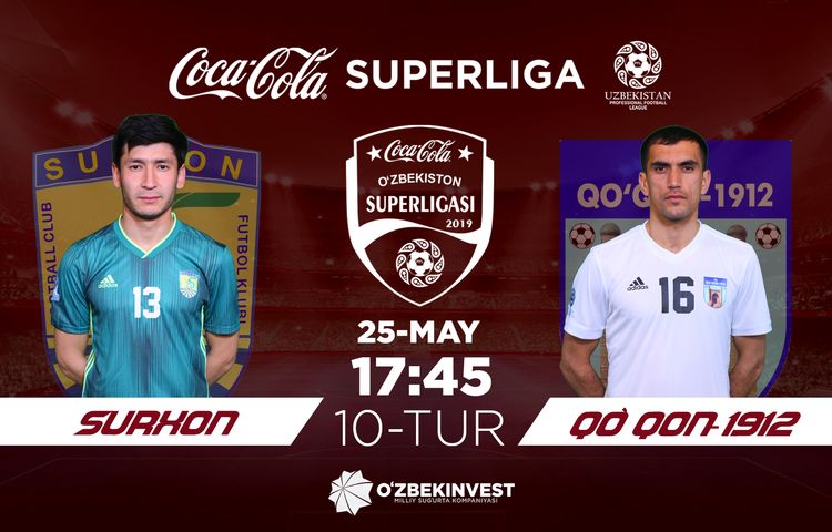 Ta`kidlash joiz, “Surxon” — “Qo`qon-1912” uchrashuvi 25 may, shanba kuni soat 17:45da bo`lib o`tadi.