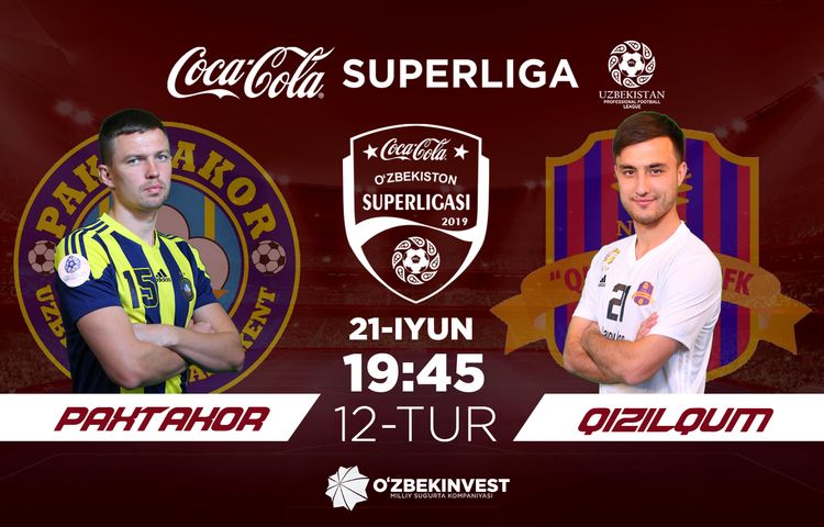 Ta`kidlash joiz, “Paxtakor” — “Qizilqum” uchrashuvi 21 iyun, juma kuni soat 19:45da bo`lib o`tadi.