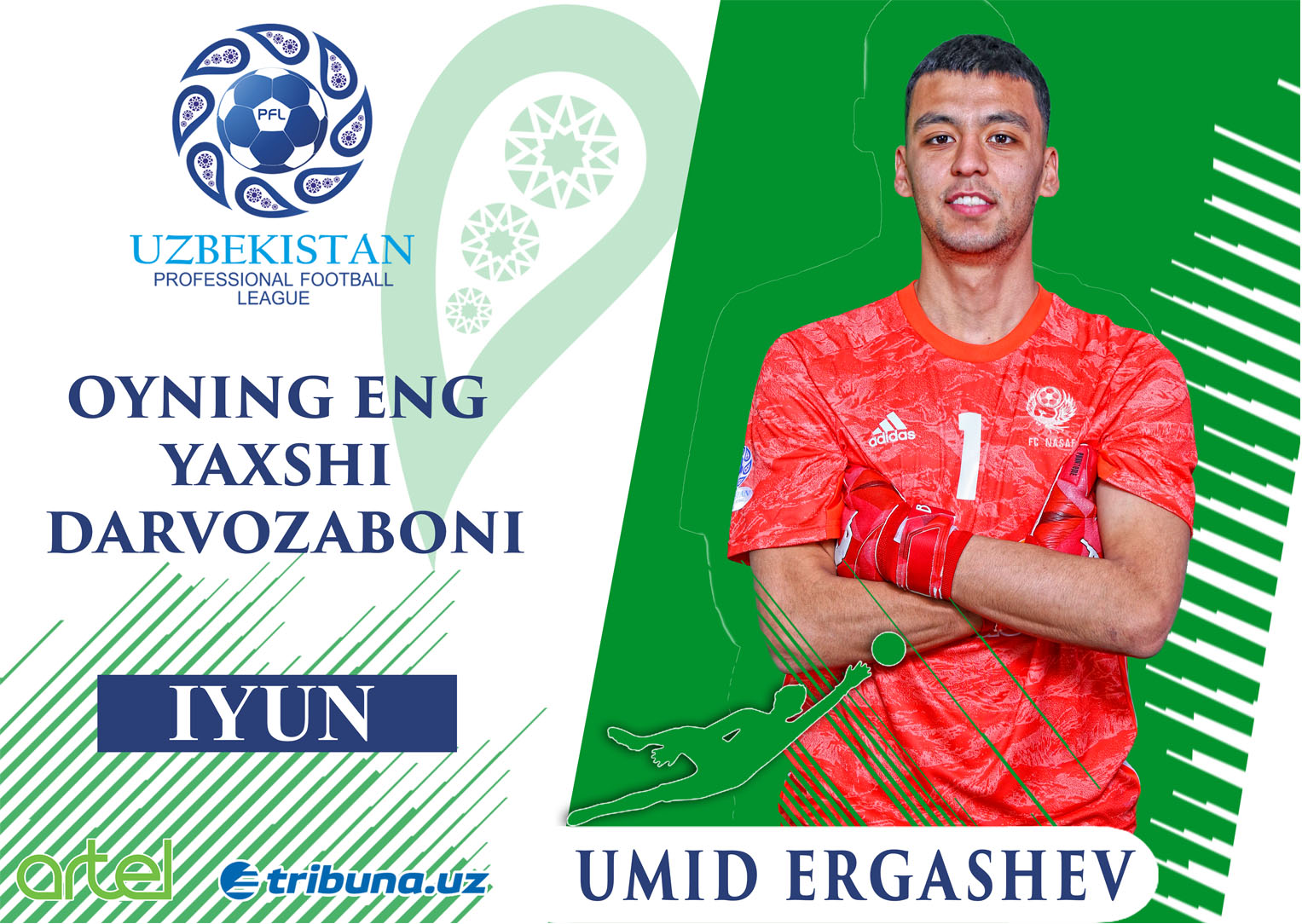 Oyning eng yaxshilarini aniqlash maqsadida o`tkazilgan so`rovnoma yakunlariga ko`ra, “Nasaf” jamoasi posboni Umidjon Ergashev (3 o`yin, 2 quruq o`yin, 4 seyv) eng ko`p ochko jamg`arishga muvaffaq bo`ldi va iyun oyining eng yaxshi darvozaboni deya e`tirof etildi.