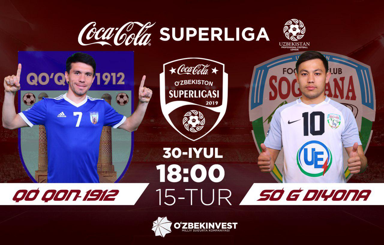 Tur doirasida “Qo`qon-1912” o`z maydonida “So`g`diyona” bilan bahs yuritadi. Uchrashuvda mezbonlar qizil-yashil rangli sport formalarida maydonga chiqishadi. “So`g`diyona” futbolchilari esa oq rangdagi formada harakat qilishadi.