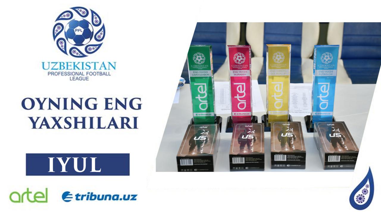 Oyning eng yaxshilarini aniqlash maqsadida o`tkazilgan so`rovnoma yakunlariga ko`ra, "Paxtakor" a`zosi Jaloliddin Masharipov iyul oyining eng yaxshi futbolchisi, "So`g`diyona" bosh murabbiyi Ulug`bek Baqoev oyning eng yaxshi murabbiyi, "Paxtakor" posboni Eldorbek Suyunov iyul oyining eng yaxshi darvozaboni deb topilgan bo`lsa, "Andijon" jamoasi yarim himoyachisi Oybek Qilichev tomonidan "Buxoro" darvozasiga kiritilgan to`p o`tgan oyning eng chiroyli goli sifatida e`tirof etildi.