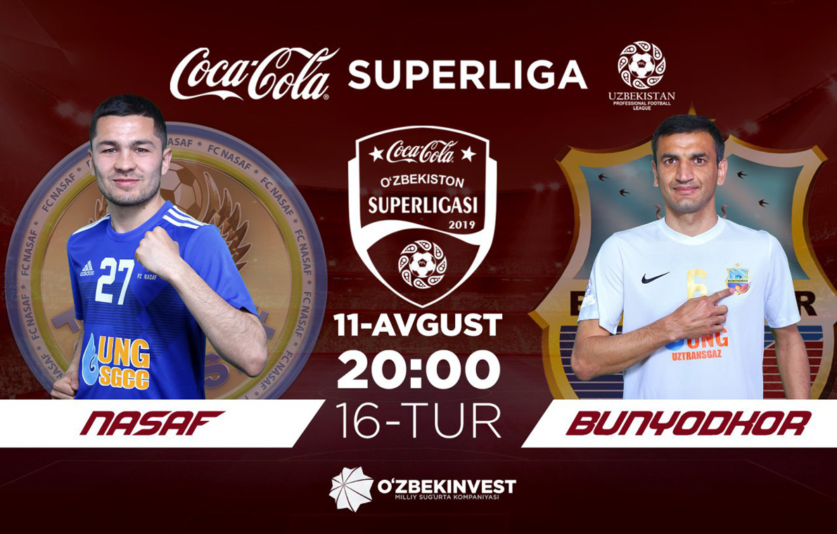 Ta`kidlash joiz, “Nasaf” — "Bunyodkor" uchrashuvi 11-avgust, shanba kuni soat 20: 00da bo`lib o`tadi.