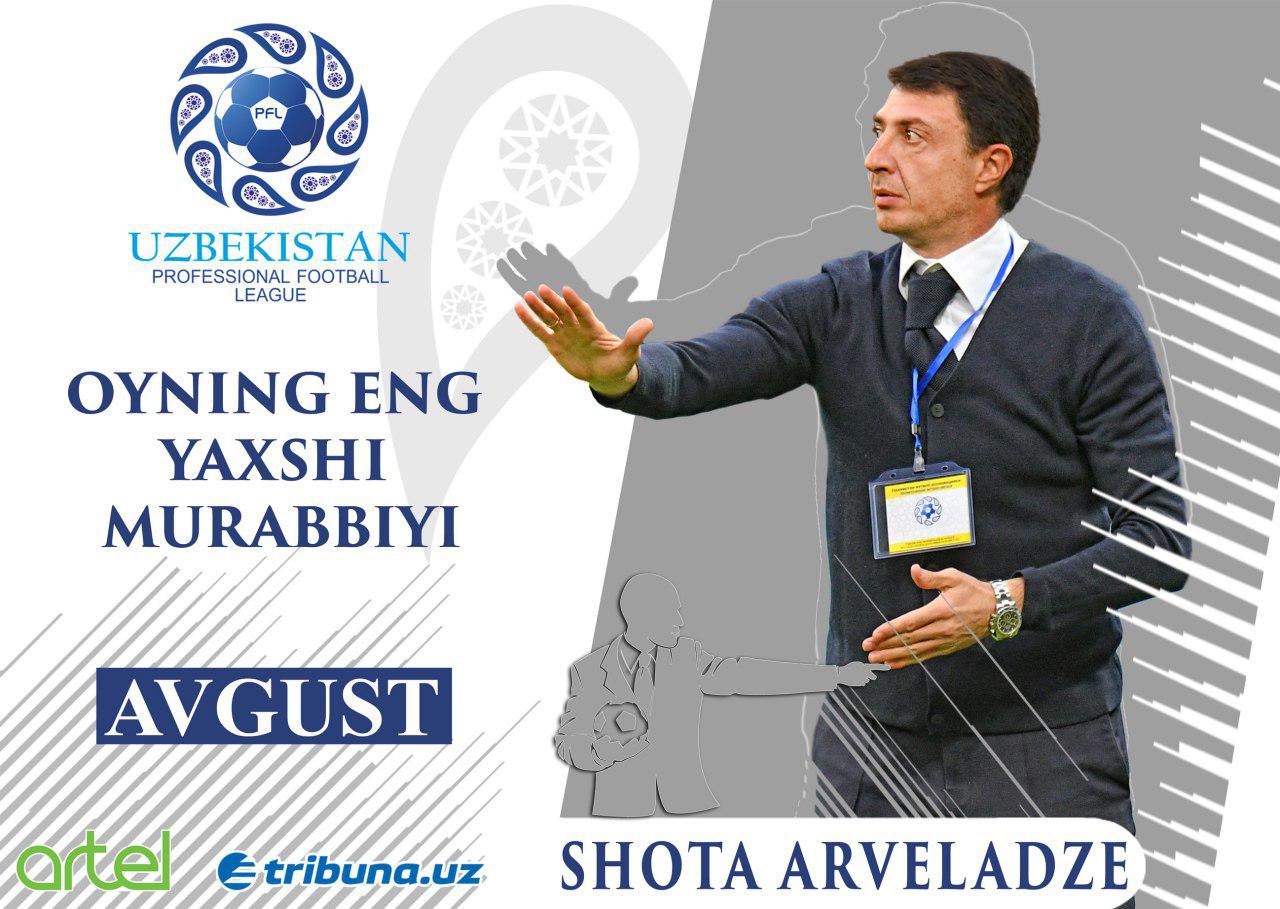 Oyning eng yaxshilarini aniqlash maqsadida o`tkazilgan so`rovnoma yakunlariga ko`ra, “Paxtakor” jamoasi bosh murabbiyi Shota Arveladze (3 o`yin, 3 g`alaba) eng ko`p ochko jamg`arishga muvaffaq bo`ldi va avgust oyining eng yaxshi murabbiyi deya e`tirof etildi.