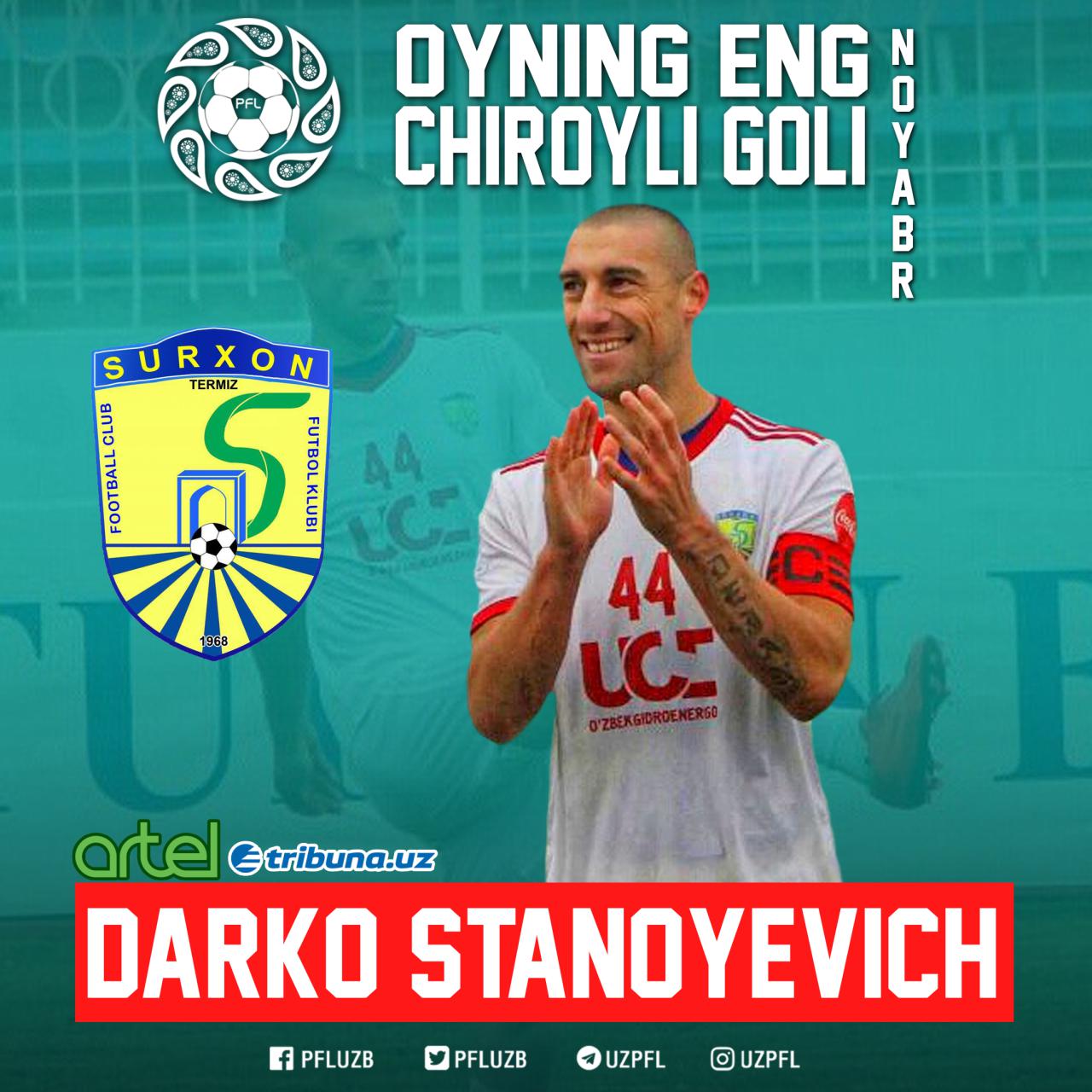 Oyning eng yaxshilarini aniqlash maqsadida o`tkazilgan so`rovnoma yakunlariga ko`ra, “Surxon” jamoasi a`zosi Darko Stanoevichning "So`g`diyona" darvozasiga kiritgan goli eng ko`p ochko jamg`arishga muvaffaq bo`ldi va noyabr oyining eng chiroyli goli deya e`tirof etildi.