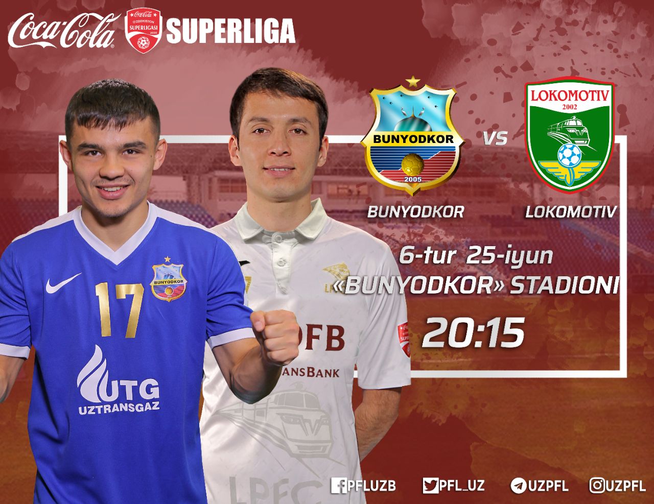 25-iyun kuni Coca Cola Superligada 6-tur uchrashuvlari start oladi. Turning markaziy o‘yinida “Bunyodkor” va “Lokomotiv” jamoalari o‘zaro bahs olib borishadi.