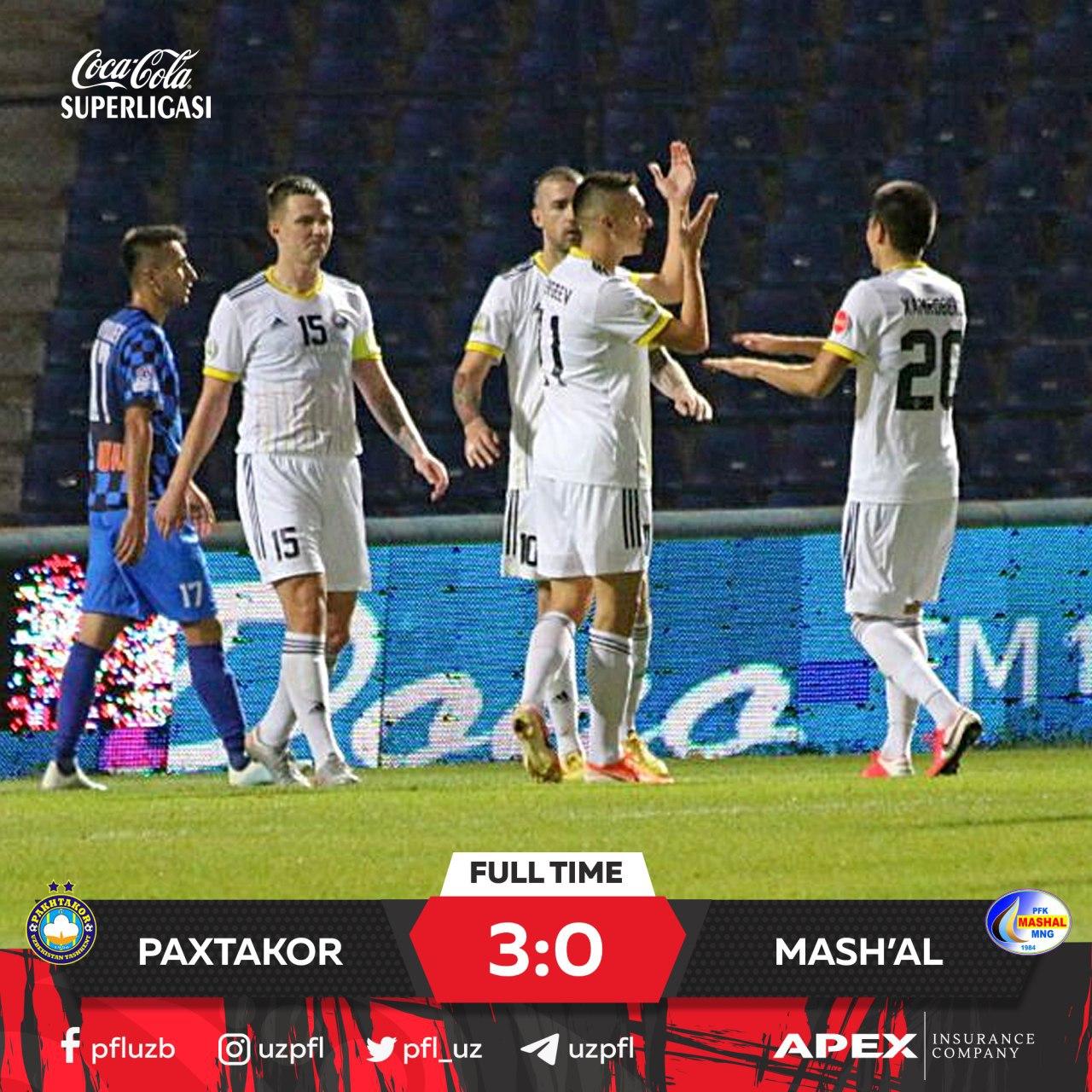 Gollar: Dilshod Ahmadaliev, 25 (1:0), Shahboz Erkinov, 28 (2:0), Igor Golban, 57 (2:1), Selim Nurmuradov, 88 (3:1)
