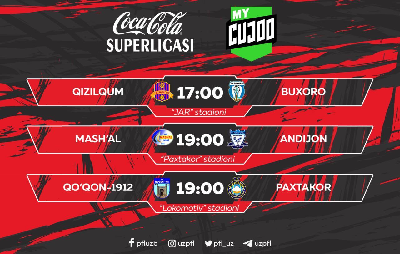 Bugun Coca Cola Superligasida 10-tur uchrashuvlari davom ettiriladi. Kun doirasidan uchta o‘yin o‘rin olgan bo‘lib, ularning barchasi Mycujoo platformasi orqali onlayn namoyish etiladi.
