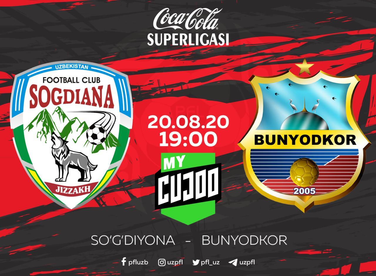 Bugun Coca Cola Superliga 11-turidan o‘rin olgan dastlabki uchrashuv bo‘lib o‘tadi. Unda “So‘g‘diyona” jamoasi “Bunyodkor”ga qarshi bahs olib boradi. 19:00 da start oladigan mazkur bellashuv Mycujoo platformasi orqali ham onlayn translyatsiya qilinadi.
