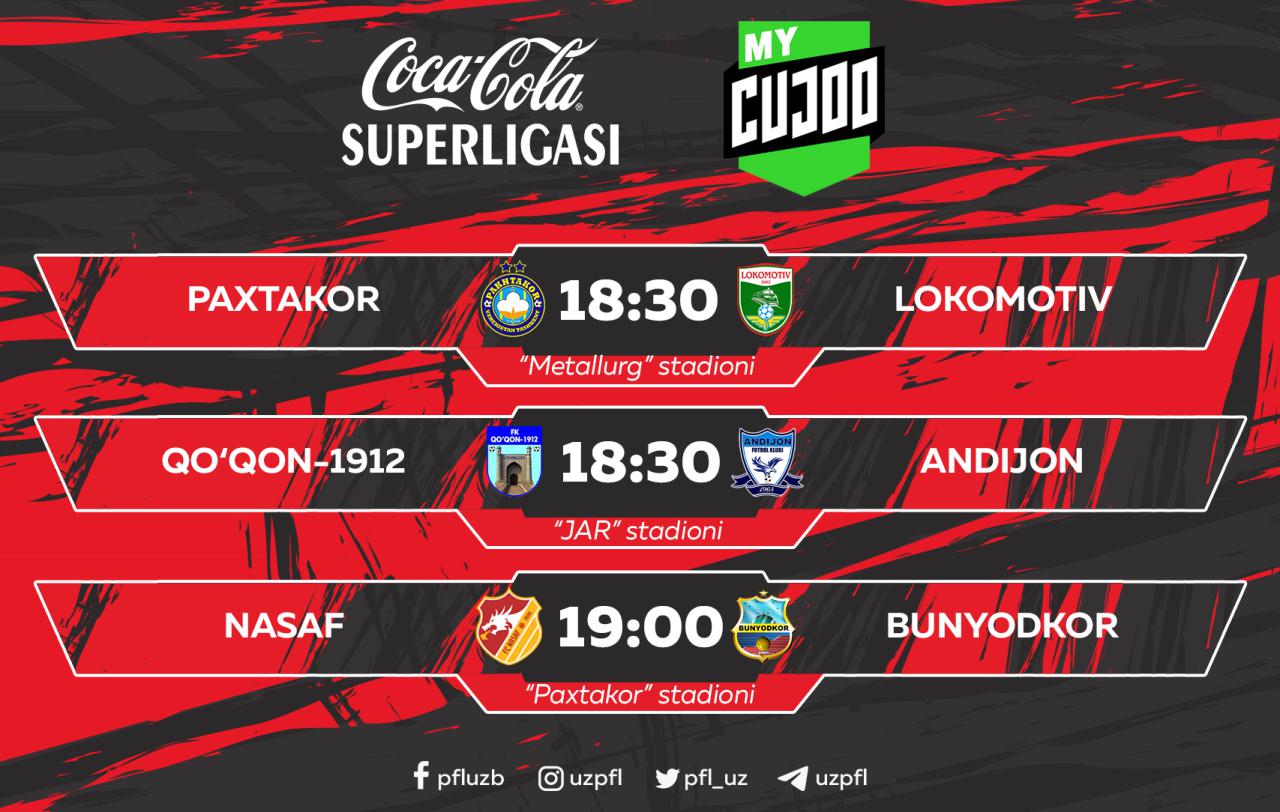 Bugun Coca Cola Superligasida 12-tur uchrashuvlari start oladi. Kun doirasidan uchta o‘yin o‘rin olgan bo‘lib, ularning barchasi Mycujoo platformasi orqali onlayn namoyish etiladi.