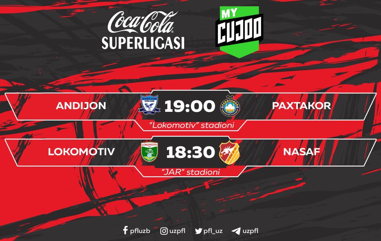 Bugun Coca Cola Superligasida 13-tur uchrashuvlari start oladi. Kun doirasidan ikki o‘yin o‘rin olgan bo‘lib, ularning barchasi Mycujoo platformasi orqali onlayn namoyish etiladi