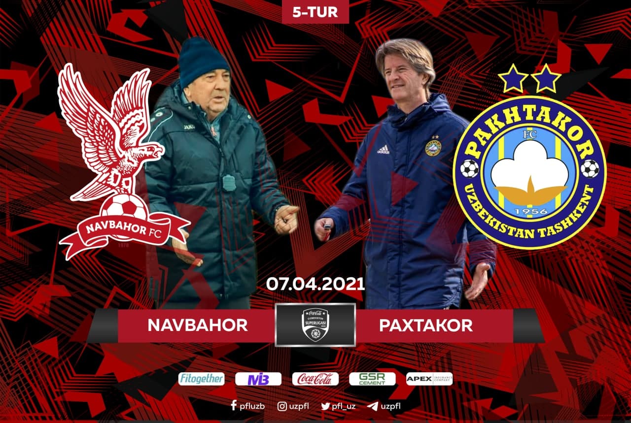 Coca-Cola Superliga 5-turidan joy olgan “Navbahor” — “Paxtakor” uchrashuvi avvaldan rejalashtirilgani kabi 9-aprel sanasida emas, 7-aprelda bo‘lib o‘tadi.