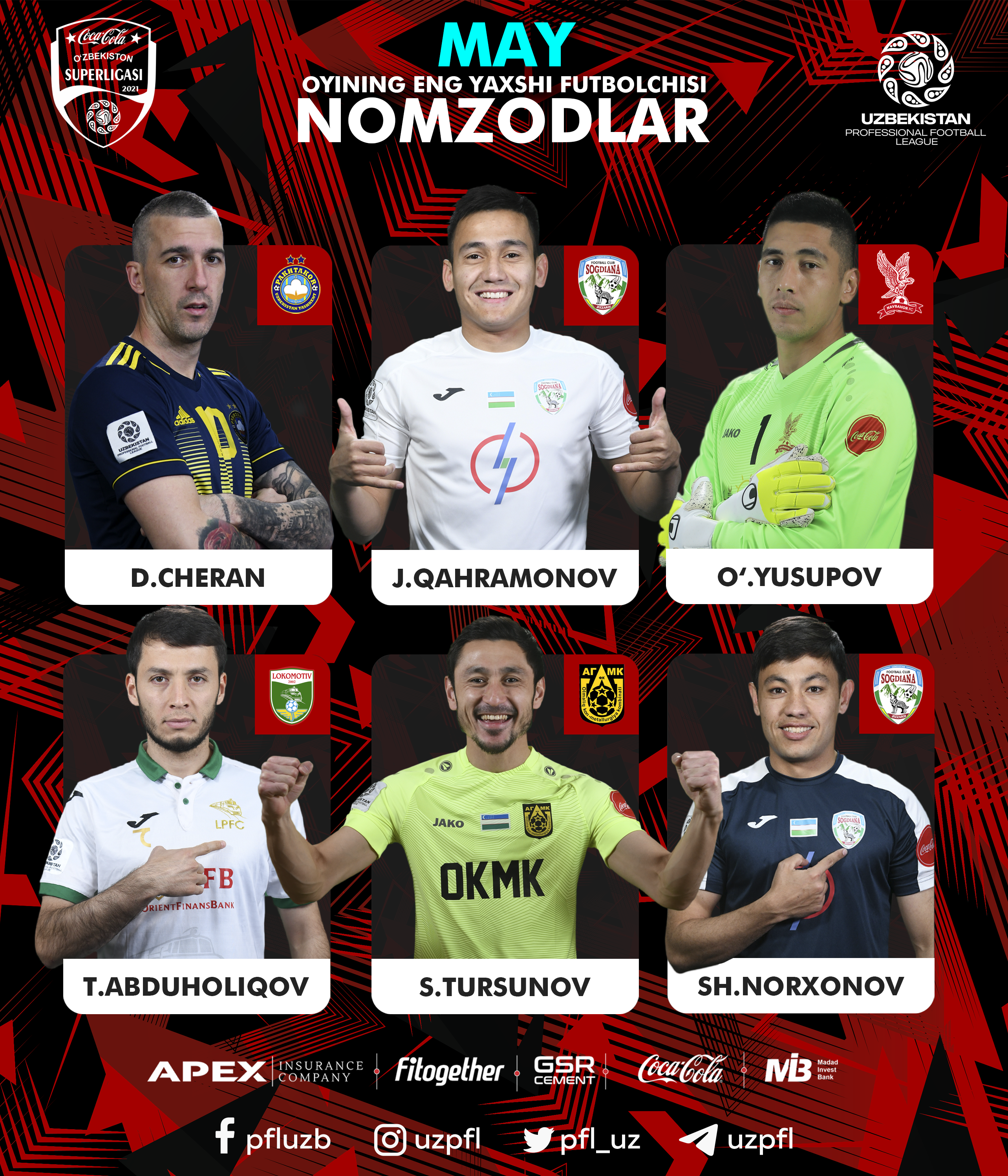 O‘zbekiston Professional futbol ligasi odatga ko‘ra, har oy Coca-Cola Superliganing eng yaxshi murabbiyi va futbolchisi, shuningdek, eng chiroyli golini aniqlab kelmoqda. Ortda qolayotgan may oyida Superligada 3 ta tur uchrashuvlari bo‘lib o‘tdi. Mazkur bellashuvlar davomida ko‘plab futbolchi va murabbiylar o‘zlarini ko‘rsatishga erishdi.