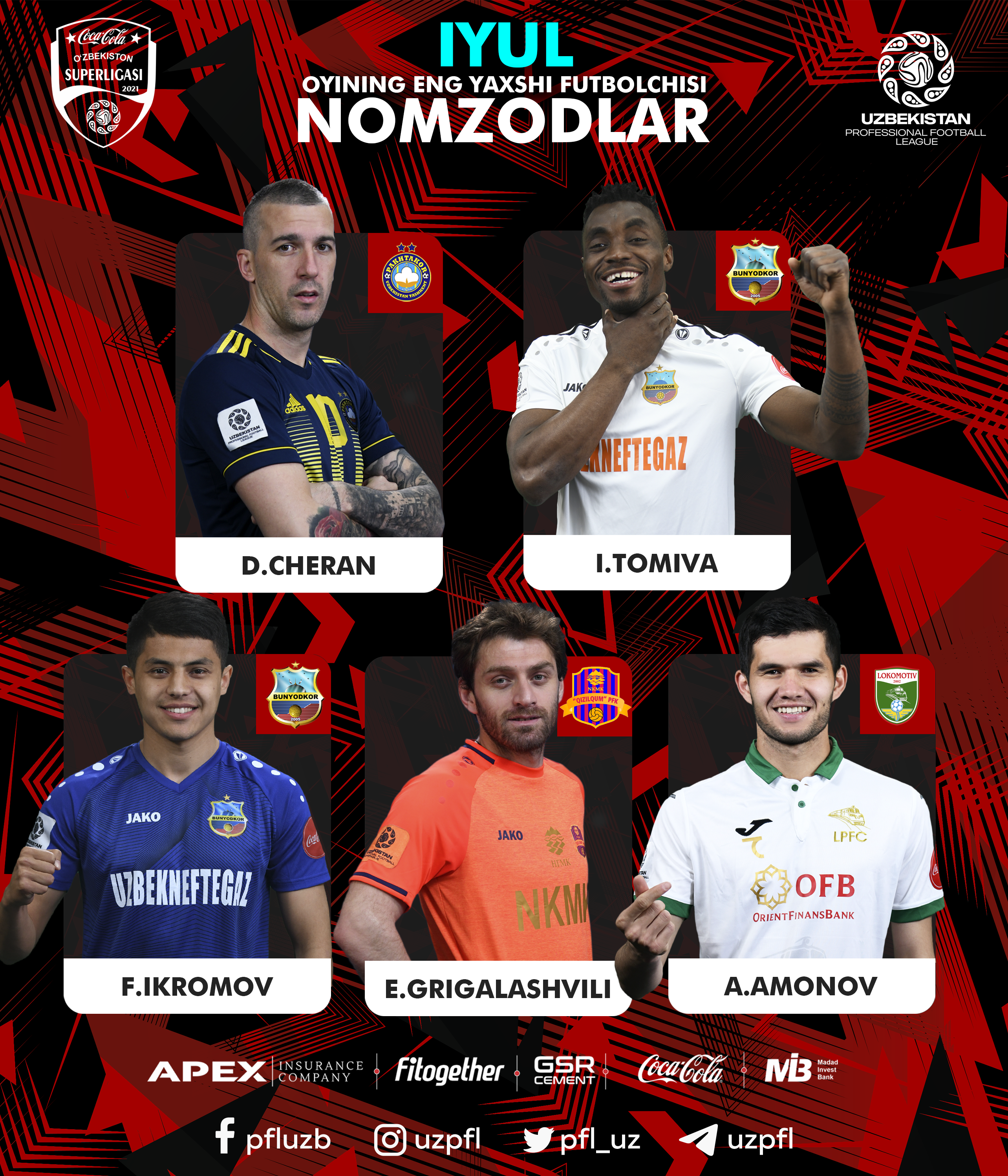 Iyul oyining eng yaxshi futbolchisi bo‘lish uchun nomzodlar