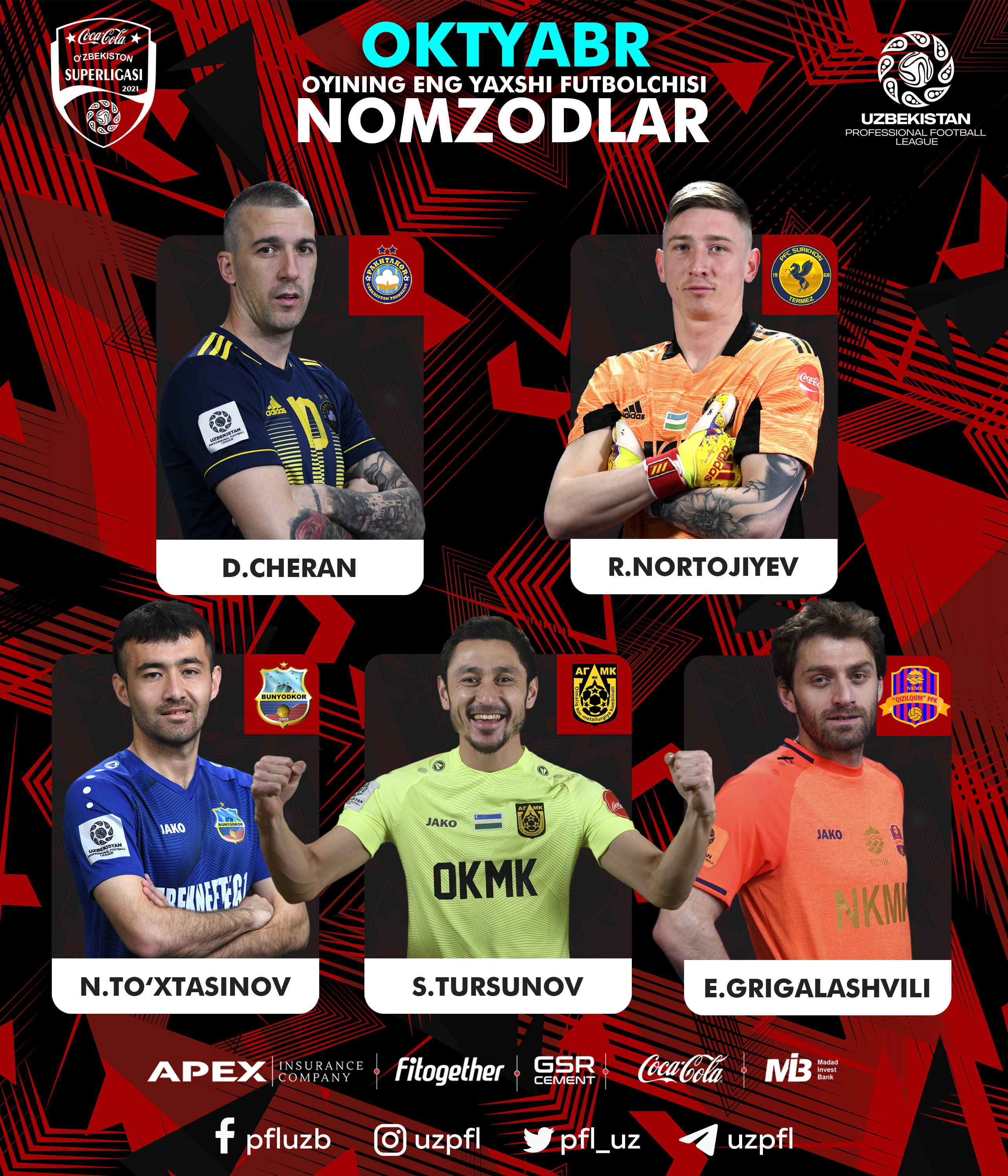 Oktyabr oyining eng yaxshi futbolchisi bo‘lish uchun nomzodlar