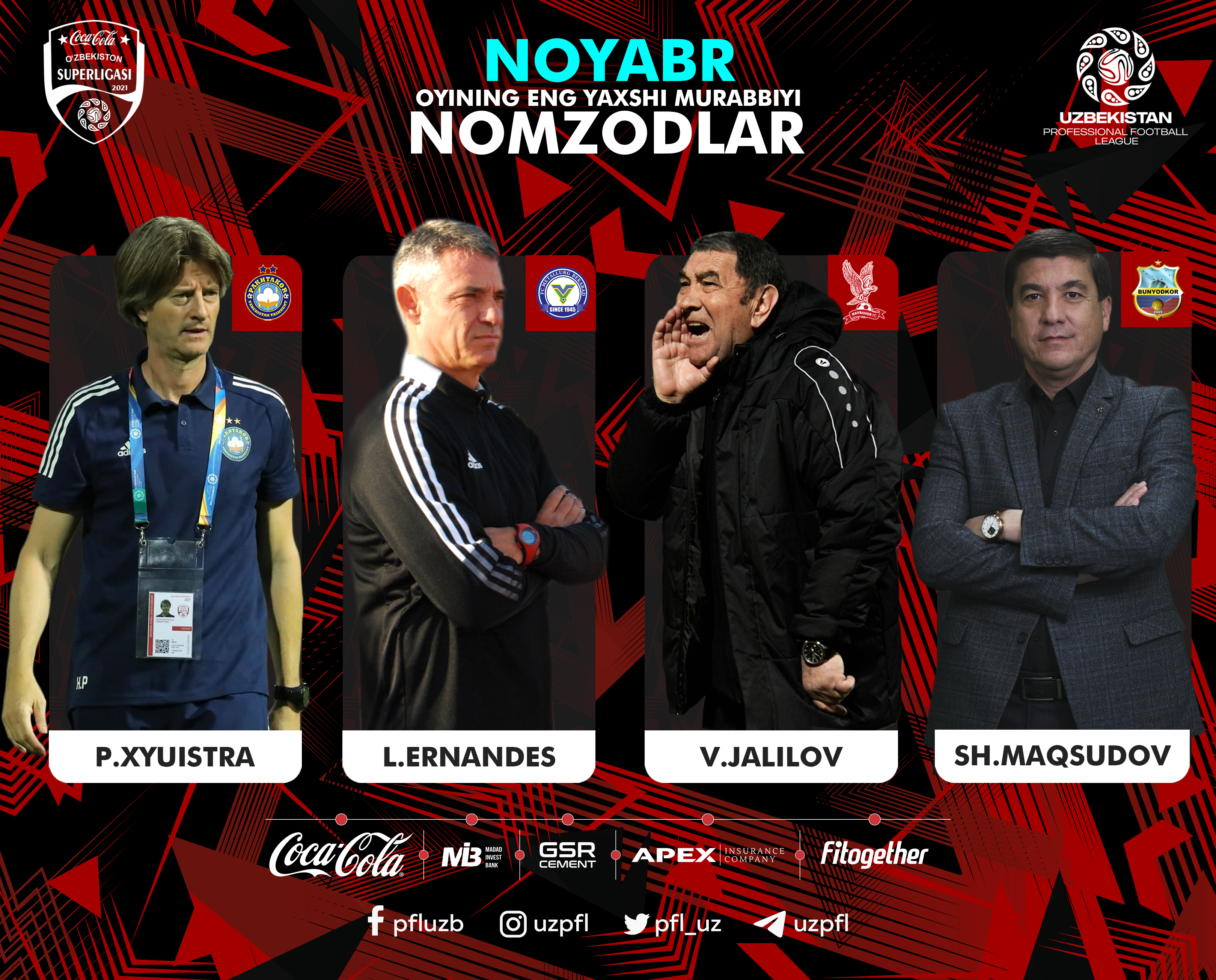 Noyabr oyining eng yaxshi murabbiyi bo‘lish uchun nomzodlar