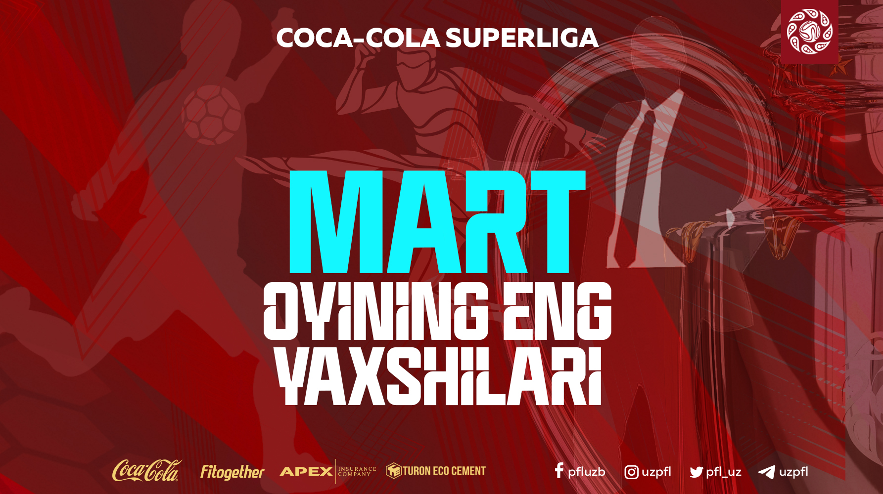 Unga ko‘ra, “Qizilqum” jamoasi bosh murabbiyi Nikola Lazarevich mart oyining eng yaxshi murabbiyi deb topildi. Yakuniga etayotgan oy Coca-Cola Superligada 3 ta o‘yinda maydonga tushib, 2 ta gol kiritgan va 1 ta assist qayd etgan Dragan Cheran (“Paxtakor”) esa eng yaxshi futbolchi bo‘ldi.