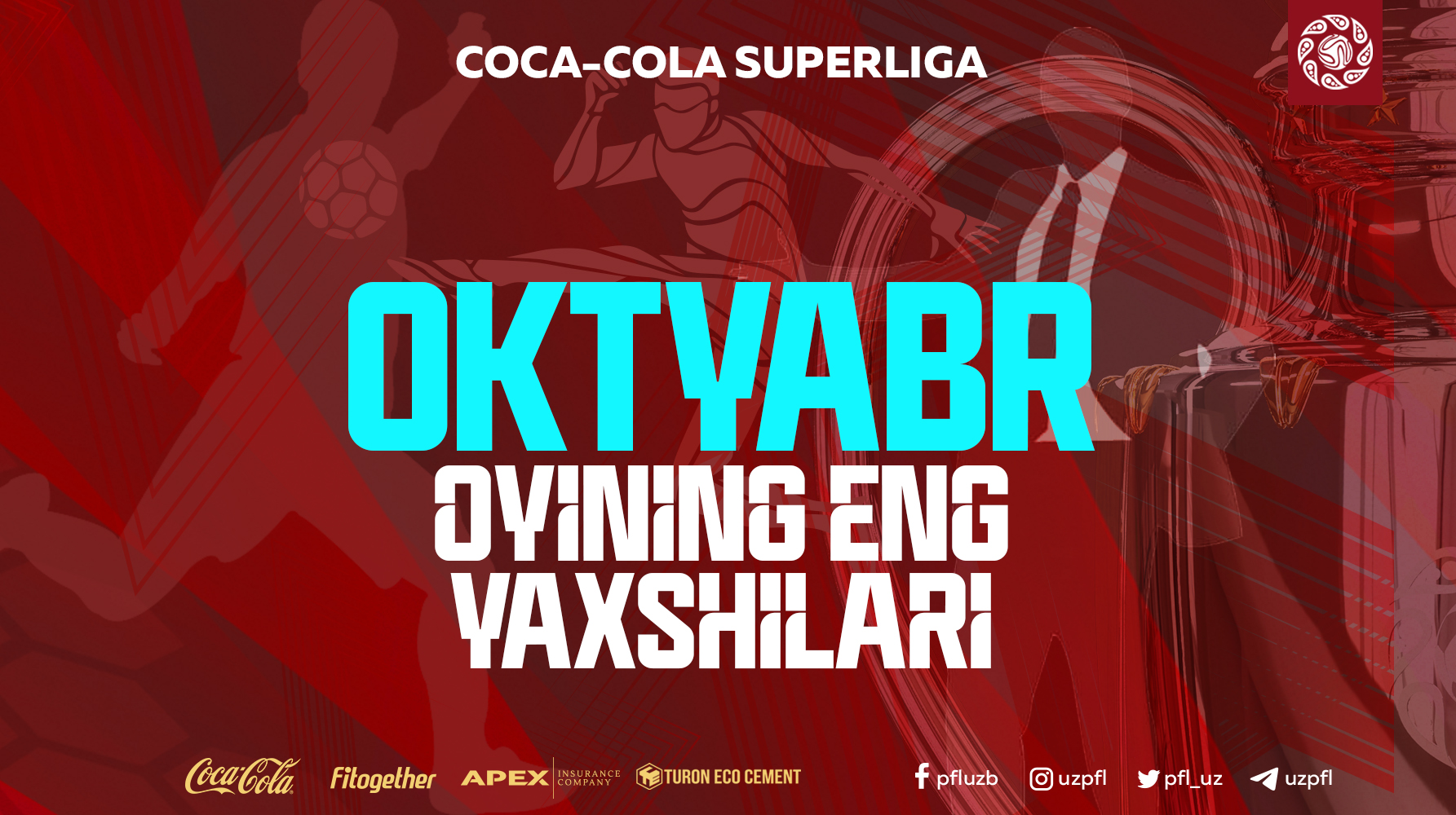 Bilasiz, O‘zbekiston Professional futbol ligasi odatga ko‘ra, har oy Coca-Cola Superliganing eng yaxshi murabbiyi va futbolchisi, shuningdek, eng chiroyli golni aniqlab keladi. Oktyabr oyida Superligada 4 ta tur bahslari bo‘lib o‘tdi. Mazkur bellashuvlar davomida chiroyli tarzda kiritilgan gollar ham ko‘p bo‘ldi.