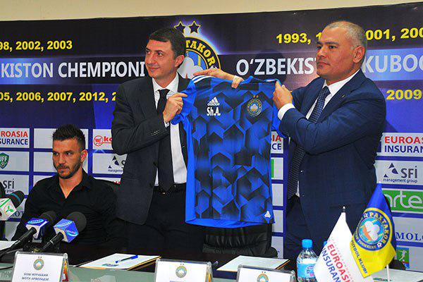 Shartnoma imzolangach, klub Prezidenti Bobur Shodiev Shota Arveladzega jamoa libosini taqdim etdi.