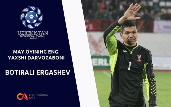 Professional futbol ligasining Championat.asia bilan hamkorlikda o`tkazayotgan so`rovnomasiga ko`ra, “Navbahor” posboni Botirali Ergashev may oyining eng yaxshi darvozaboni sifatida tan olindi.