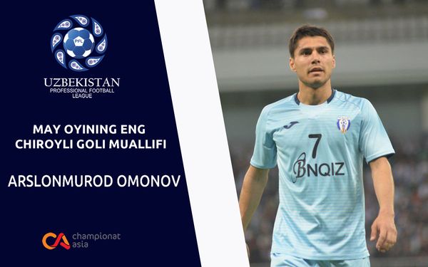 Professional futbol ligasi hamda Championat.asia hamkorligida o`tgan may oyining eng chiroyli golini aniqlashda Arslonmurod Omonov g`olib bo`ldi.
