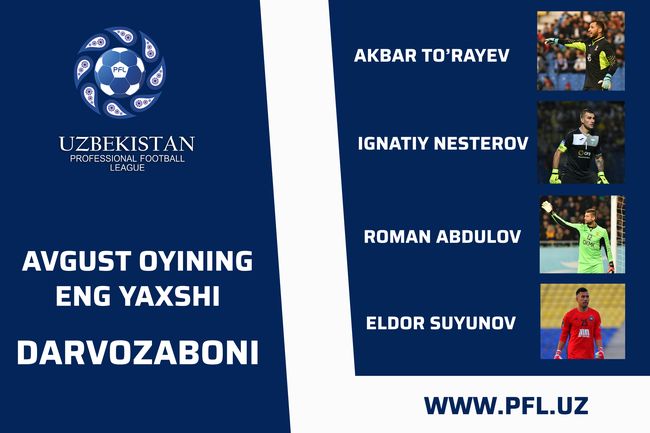 Avgust oyining eng yaxshi darvozabonini aniqlash uchun ovoz bering