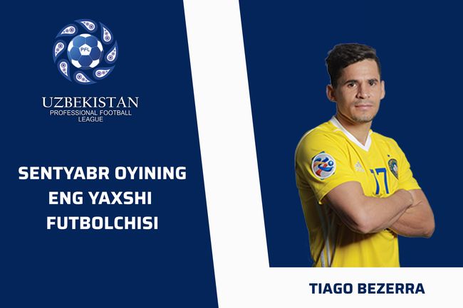 So`rovnoma yakunlariga ko`ra, o`tgan oyda 4 ta o`yinda maydonga tushib, 4 marta raqiblari darvozasini ishg`ol etgan va 1 ta assistga mualliflik qilgan “Paxtakor” jamoasi a`zosi – Tiago Bezerra eng ko`p ovoz to`pladi va sentyabr oyining eng yaxshi futbolchisi deya e`tirof etildi.
